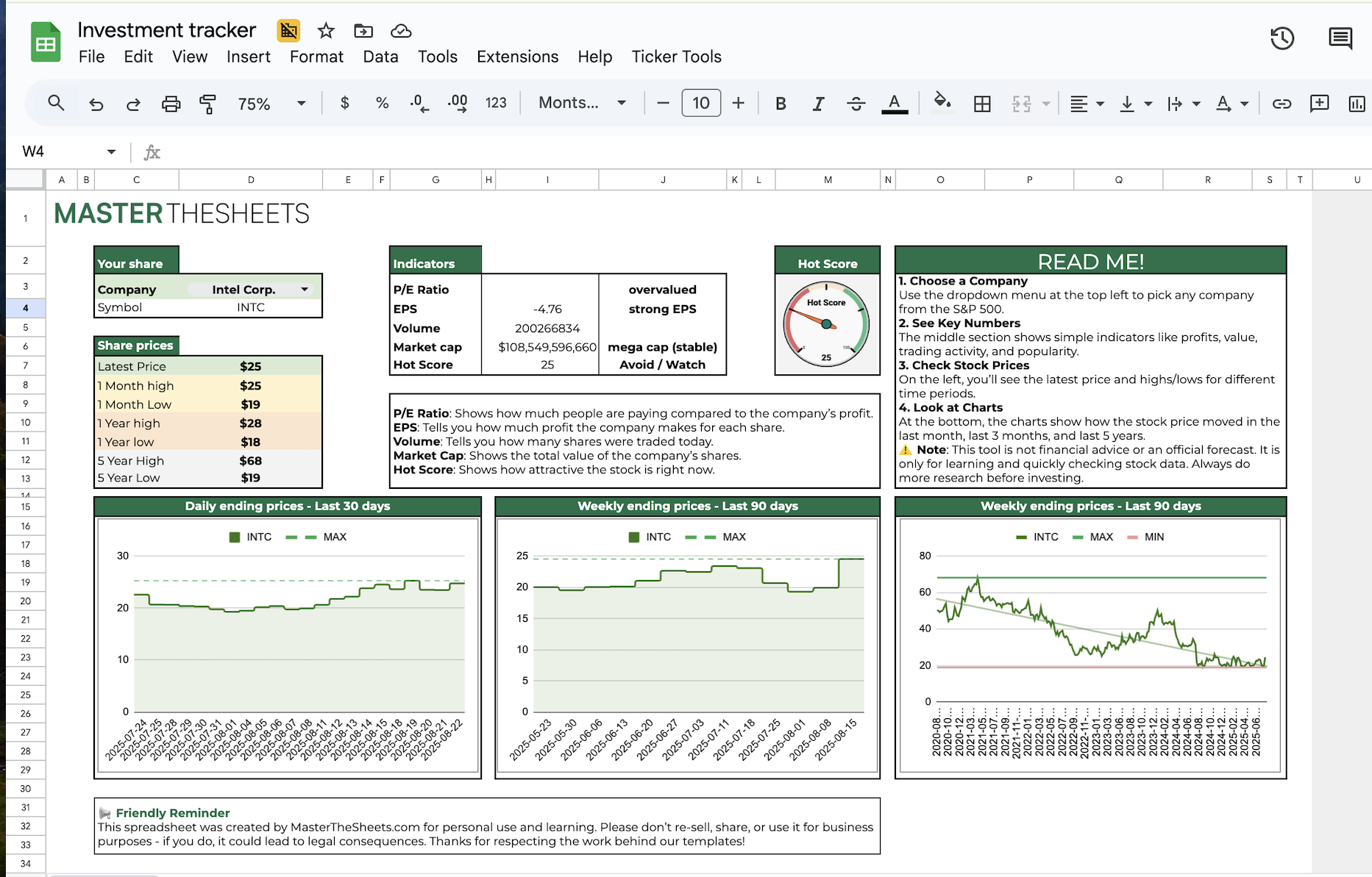 Effortlessly track your investments and manage your stock portfolio with this easy-to-use spreadsheet.